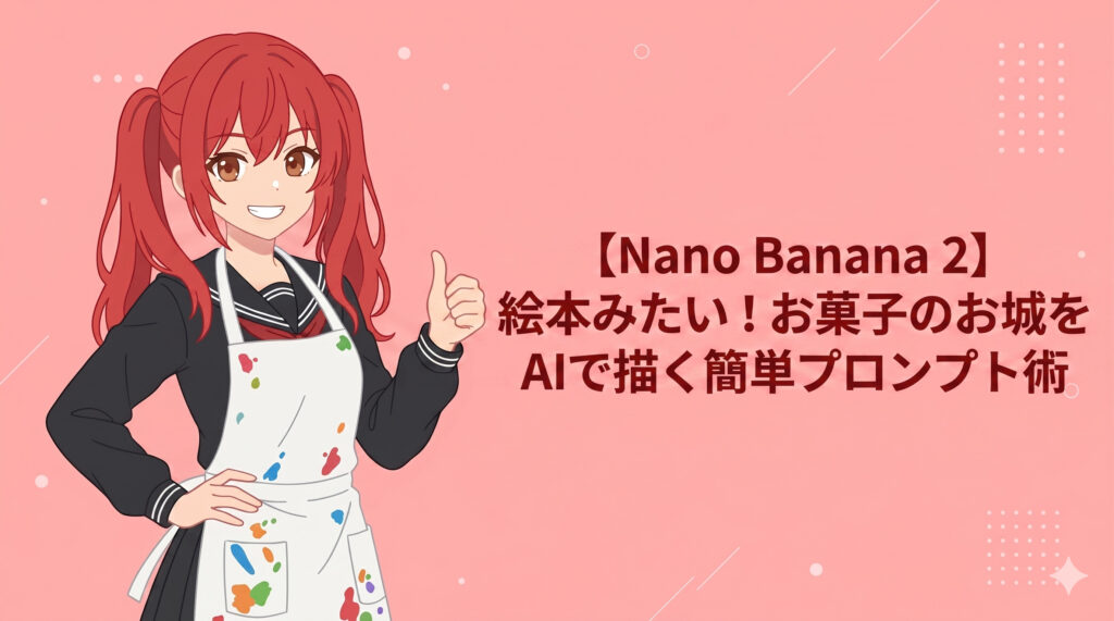 今日は、みんなが大好きな「お菓子のお城」をテーマに、Nano Banana 2で素敵な絵を作る方法を紹介するね!