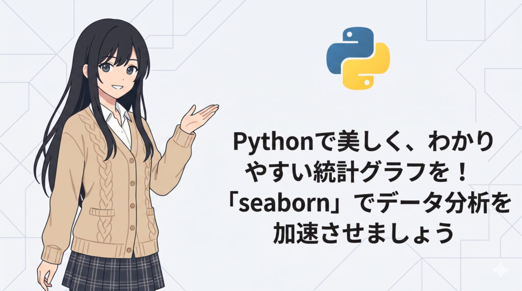 データ分析で得た洞察を、効果的に伝えるためには、視覚化が非常に重要ですよね。今回ご紹介するPythonライブラリ『seaborn』は、そんなデータ可視化を美しく、そして手軽に行うための強力なツールです。matplotlibをベースにしながらも、より高度な統計グラフを直感的に描けるように設計されており、データサイエンスの現場で幅広く活用されています。
