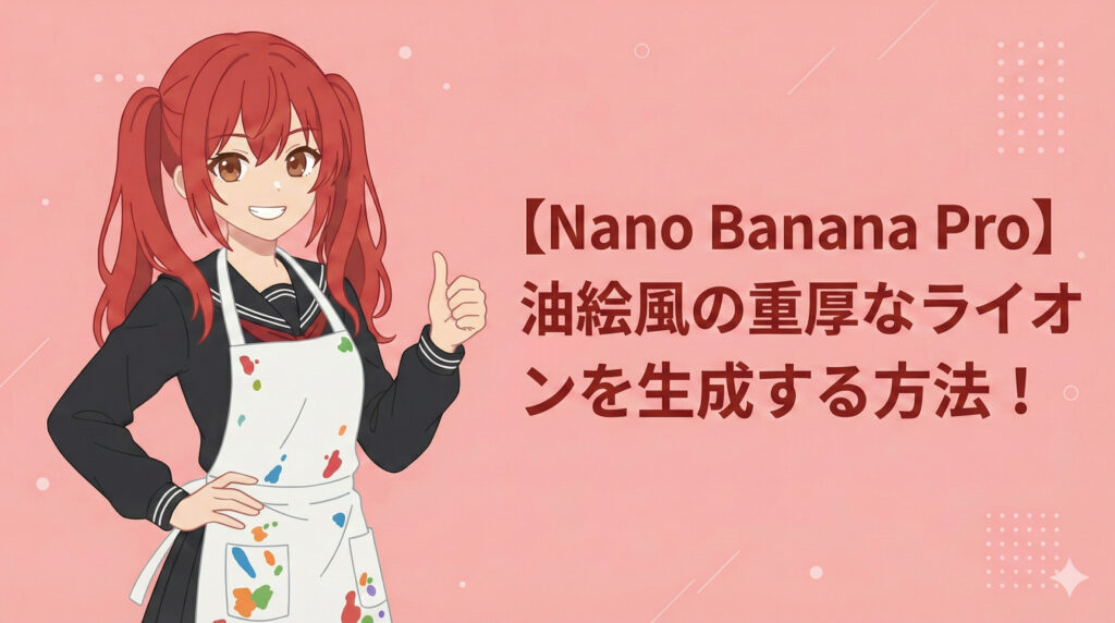 今回は、Nano Banana Proを使って「油絵風の重厚なライオン」を生成する方法を紹介しました。